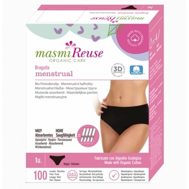 Menštruačné nohavičky Masmi, veľkosť M, čierne, z BIO bavlny, klasický strih