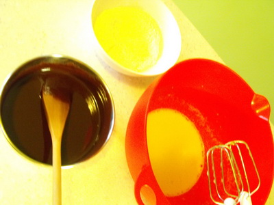 1) Vo vodnom kúpeli roztopíme čokoládu a Heru, odstavíme a necháme trochu vychladnúť