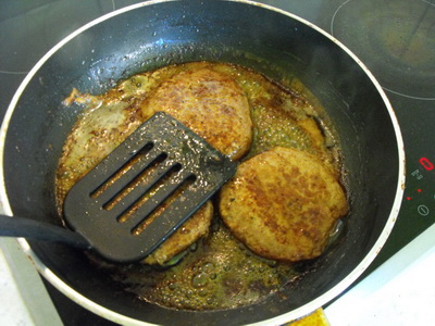 3) Otočíme, pritláčame a pečieme 3 minúty
