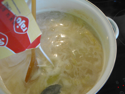 3) Pridáme smotanu a miešame.