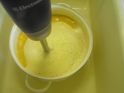 2) Keď je hrach mäkký,vyhodíme cibuľu a petržlen, prilejeme vodu a hrniec si položíme do drezu. Tam polievku rozmixujeme tyčovým mixérom.
