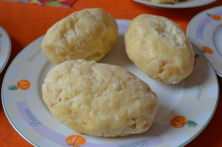 1) Rožky pokrájame na kocky. Priemešame s múkou a kypriacim práškom, posolíme, pridáme vajce a na koniec aj mlieko.
