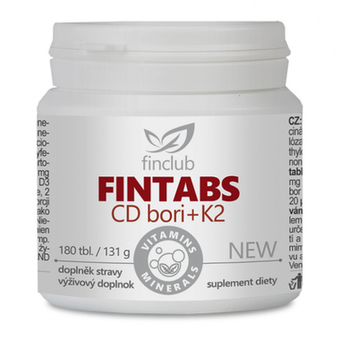 Fintabs CD bori poskytuje organizmu výživu pre pohybový aparát, vápnik je obohatený o horčík, kremík, bór, vitamíny D3, C, biotín a novo o vitamín K2. Tieto látky sú užitočné pre strednú generáciu, seniorov, ženy v menopauze i po menopauze.