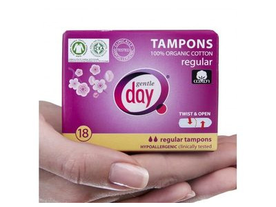Tampóny Gentle Day® Regular, 18 ks v balení, sú vyrobené zo 100 % organickej bavlny, ktorá je šetrná k vašej pokožke ako aj k prírode.