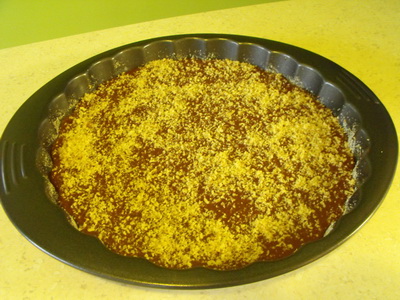 Vzniknuté cesto nalejeme do formy a posypeme orechmi