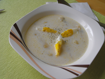 4) Odstavíme a dochutíme vegetou, citónom a muškátovým orieškom. Podávať môžeme s vajíčkom uvareným natvrdo a chlebom.