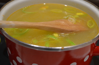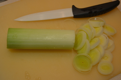 2) Do hrnca dáme trochu oleja, pridáme nakrájaný pór. Jemne orestujeme.