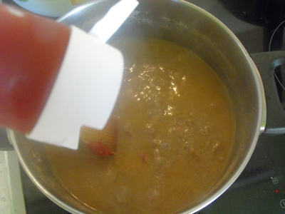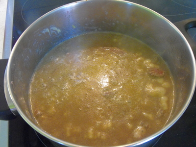 4) Po hodine by mohlo byť mäso mäkké, tak pridáme lyžicu kečupu a podľa potreby prilejeme vodu. Privedieme do varu. Varíme dovtedy, kým šťava nemá potrebnú hustotu. Podávame s cestovinou, ryžou, zemiakmi,knedľou.