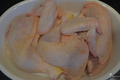 1) Kurča umyjeme, osolíme z oboch strán, a položíme na misu.